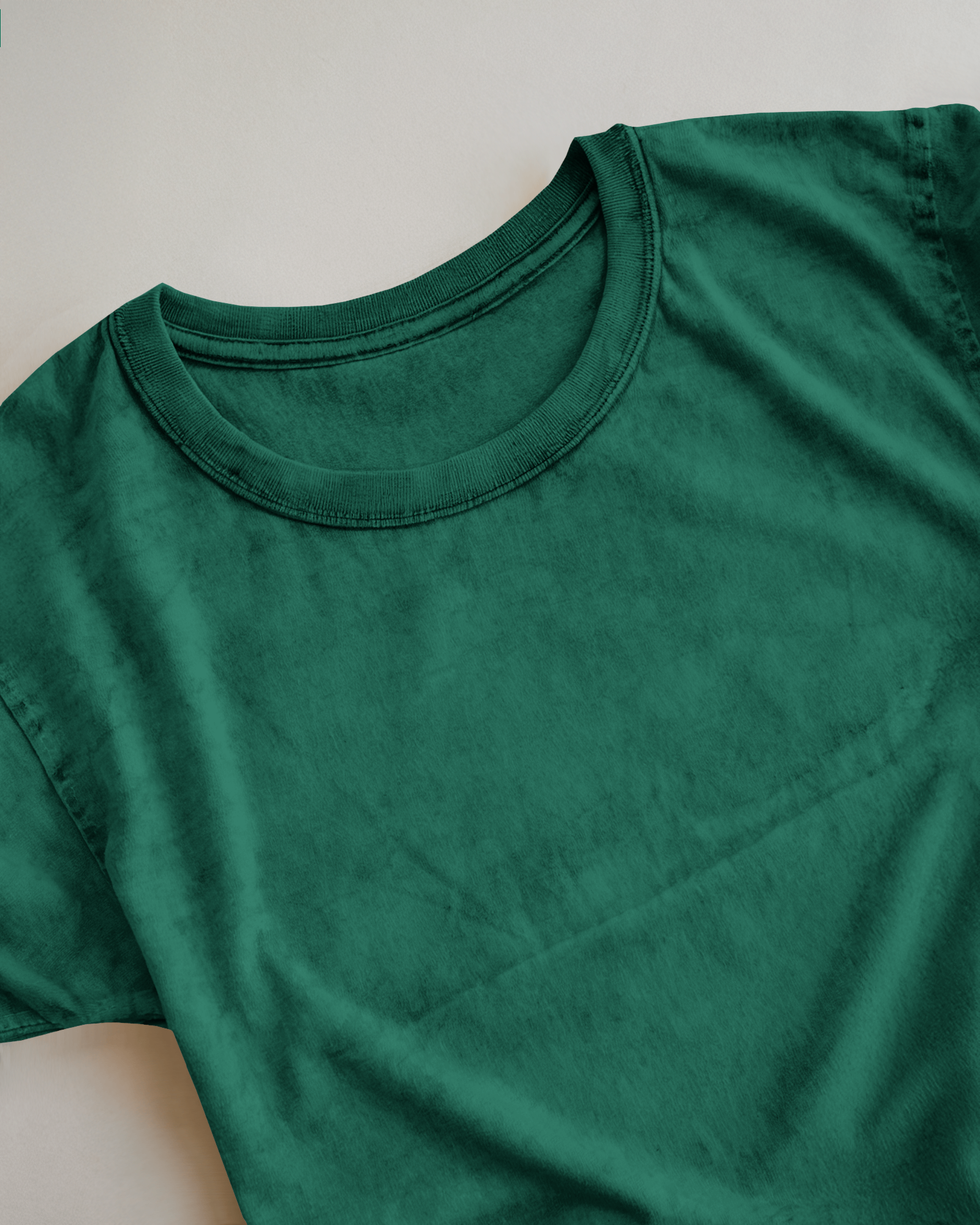 A deep bottle green oversized tee with a raw, washed finish that’s visually gritty and texture-rich. Acid-washed, not chemically destroyed — this is controlled fading that makes each T-Shirt a unique one-of-one design.